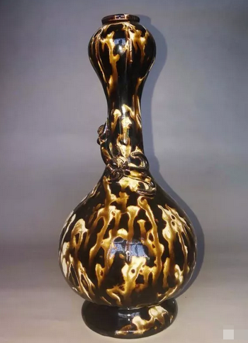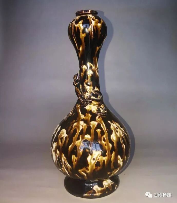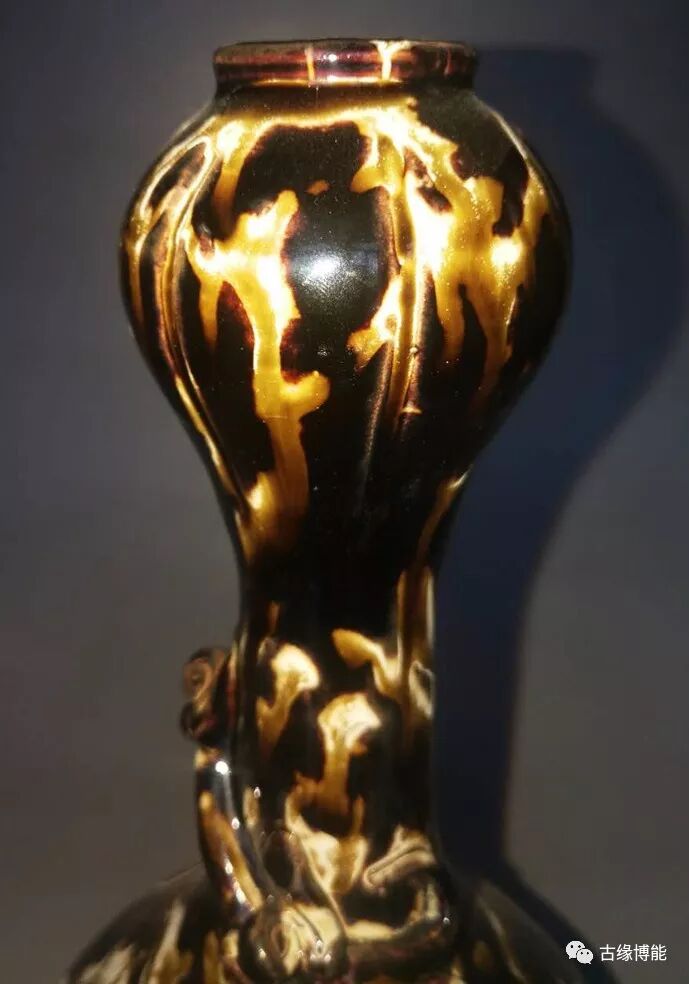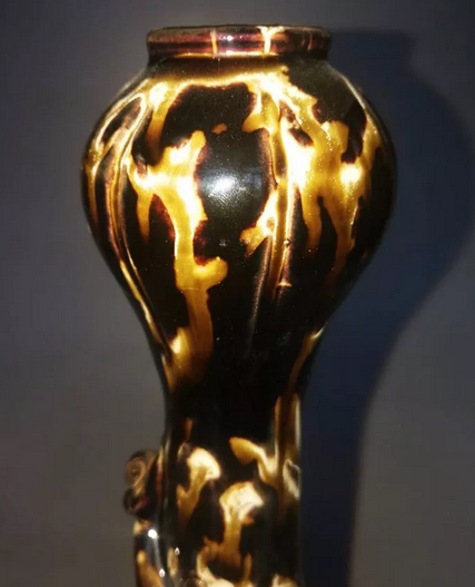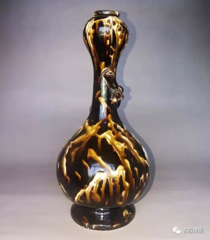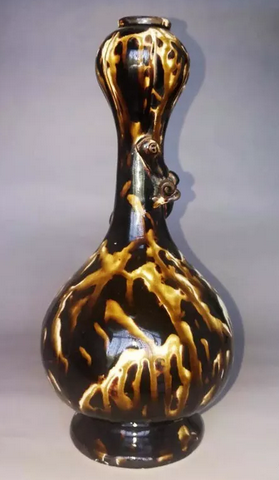 名称:吉州窑玳瑁釉螭龙耳蒜头瓶
