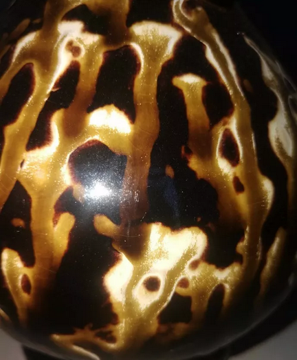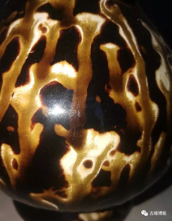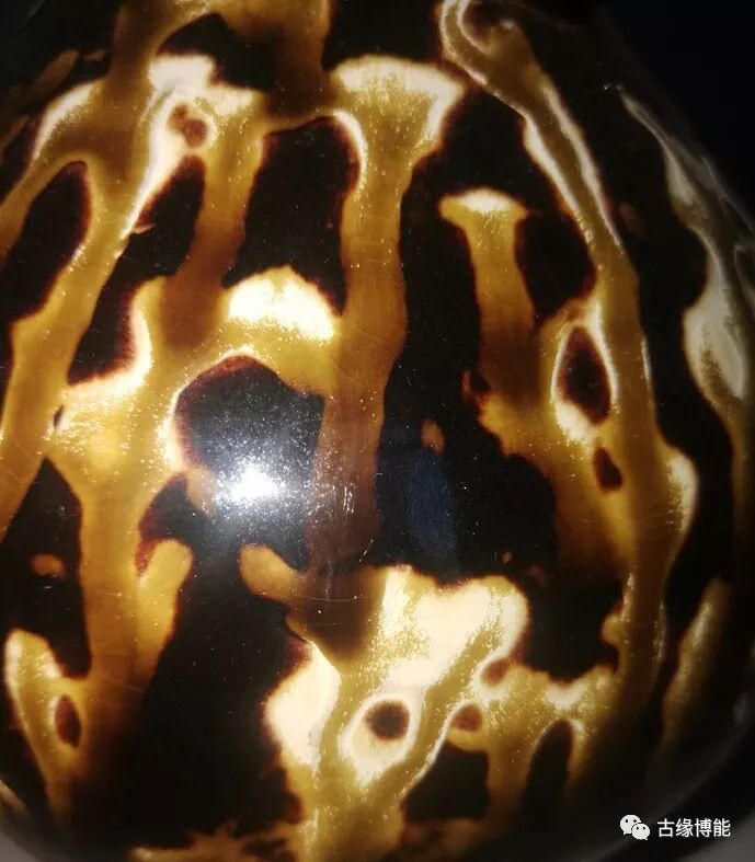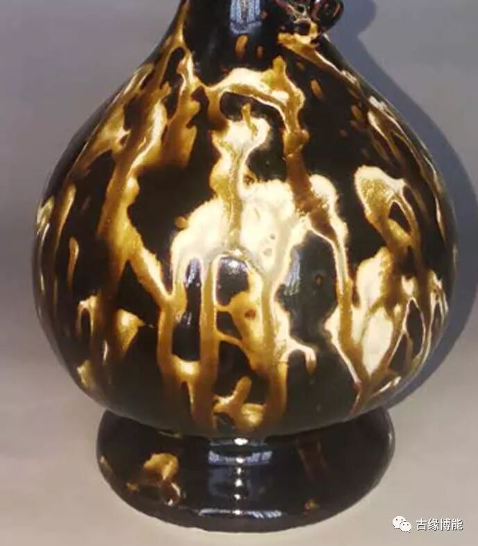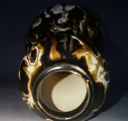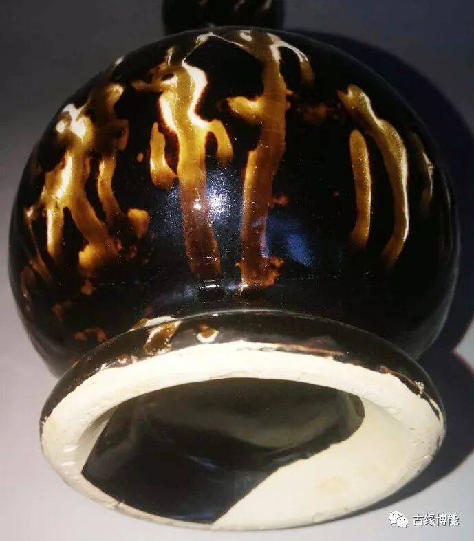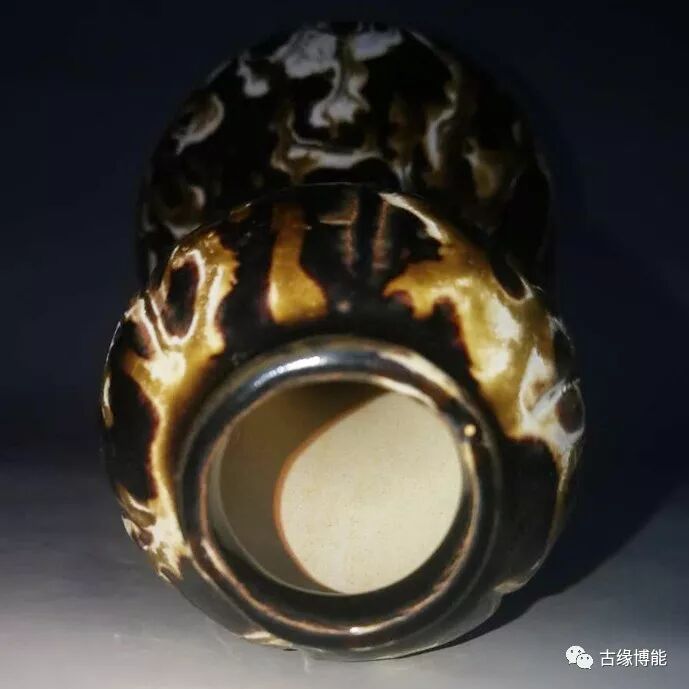 此器它的稀奇在于黑釉中产生玳瑁斑纹,自然、和谐、古朴的特征显而易见,这就是吉州窑彩绘瓷绝大多数为褐彩的原因。