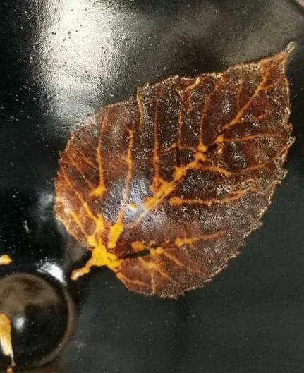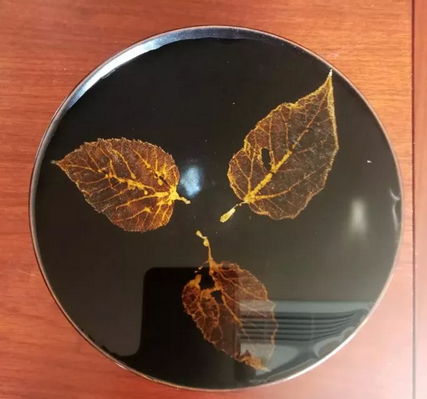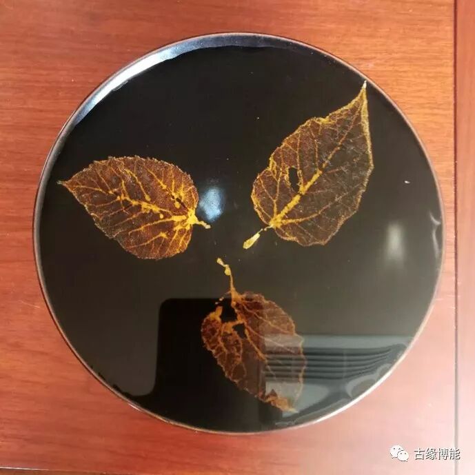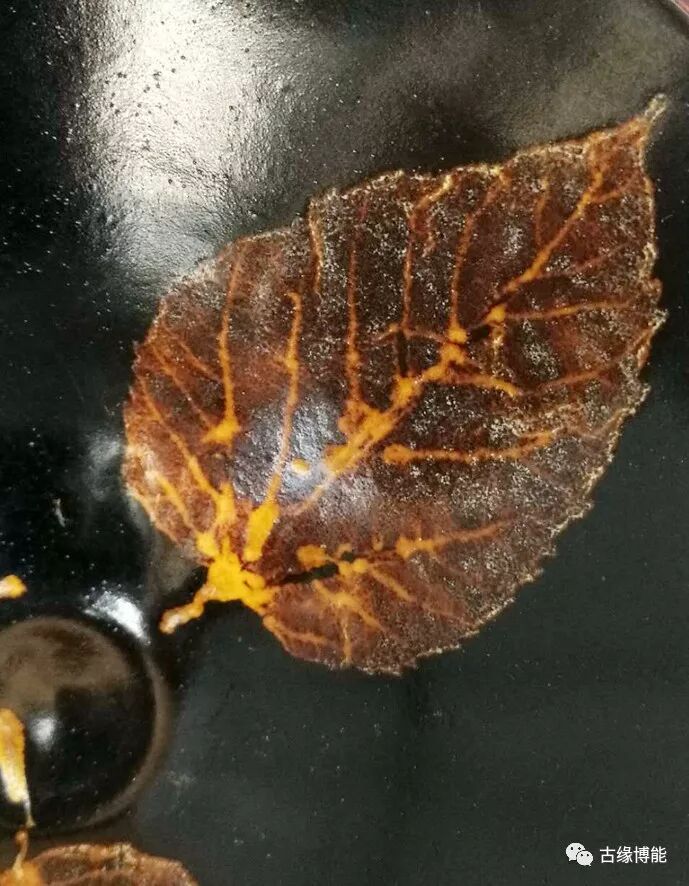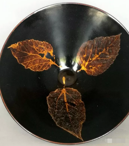 碗内壁面使用三片树叶装饰,叶脉清晰可辩,真实自然,这种装饰工艺是经高温一次烧制而形成地,