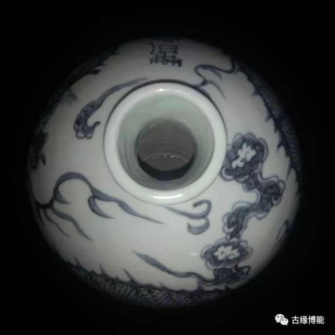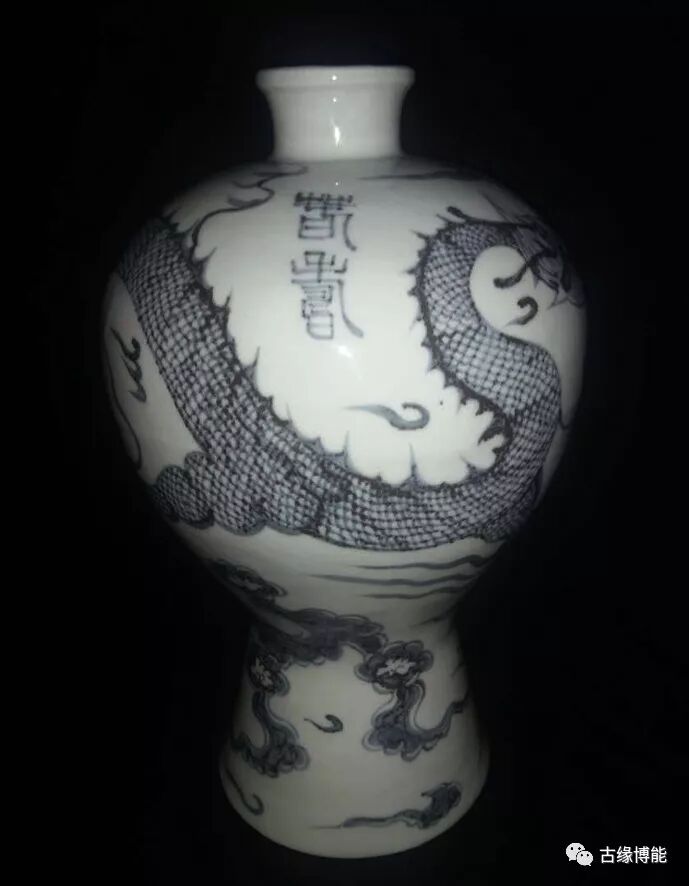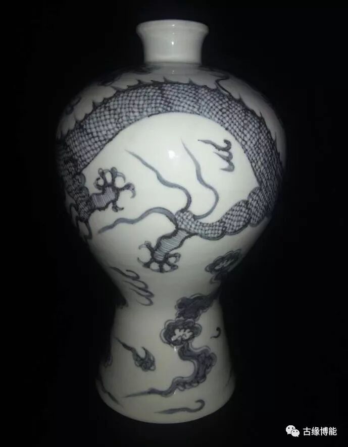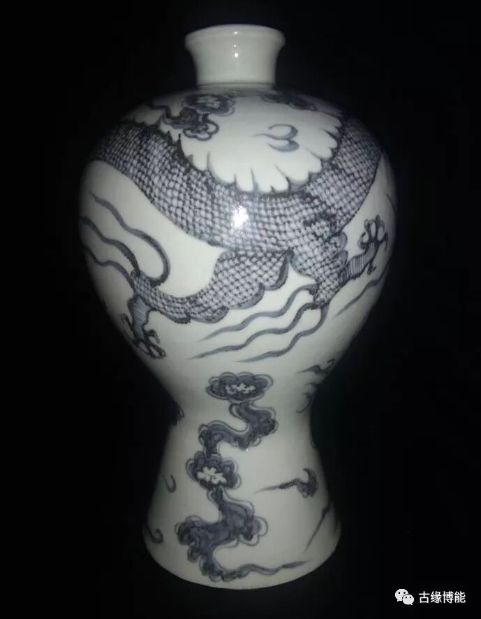瓶为侈口卷唇,短颈,丰肩,下腹缓收,胫部外撇呈凤尾形。胎质坚硬,洪武工艺还有元时留下的痕迹,