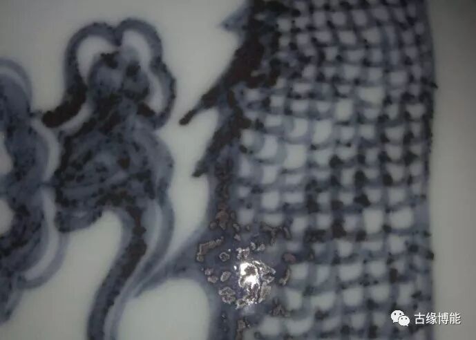 云纹为长尾蘑菇状,勾边留白,是这个时期常见的形状。整个纹饰尚有元代风格。