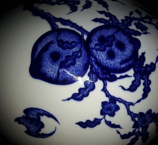 名称: 乾隆青花九桃五蝠纹天球瓶一对