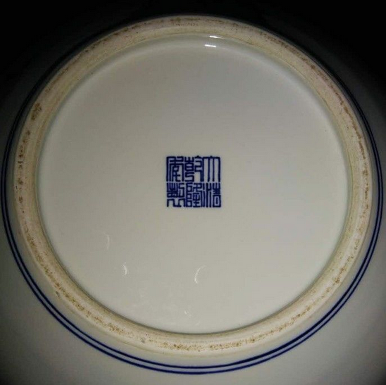 寓意九五之尊,多福多寿之意,近足处绘青花双圈,足内署青花“大清乾隆年制”六字三行篆书款。