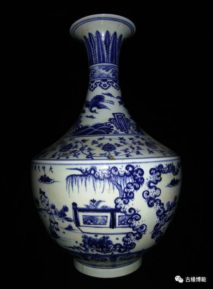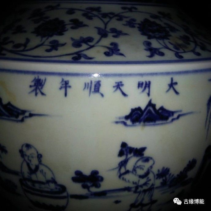 此青花釉质细平滋润,含铁量稍少,釉面光洁,绝少缩釉细点,多数釉面温润如玉,但天顺朝的青花色调逐渐崇尚淡雅,浓淡不一,而钴蓝发色仍以靛青为主。