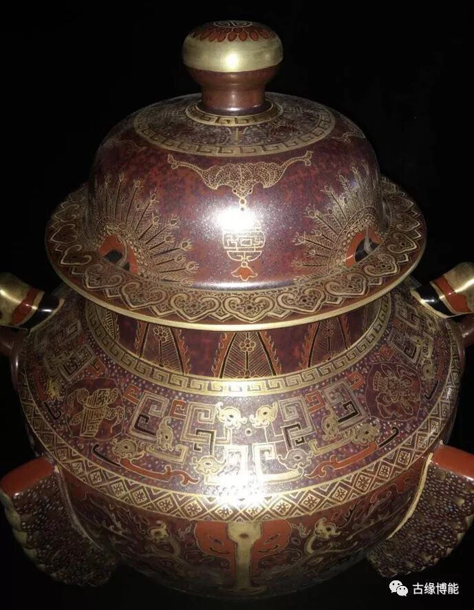 名称:乾隆古铜釉饕餮纹岀戟盖罐