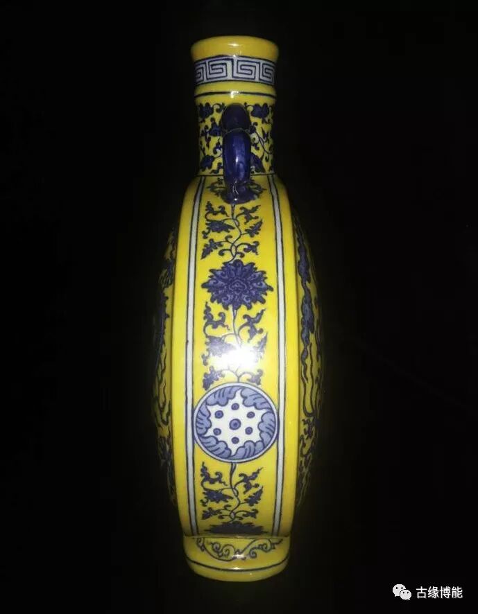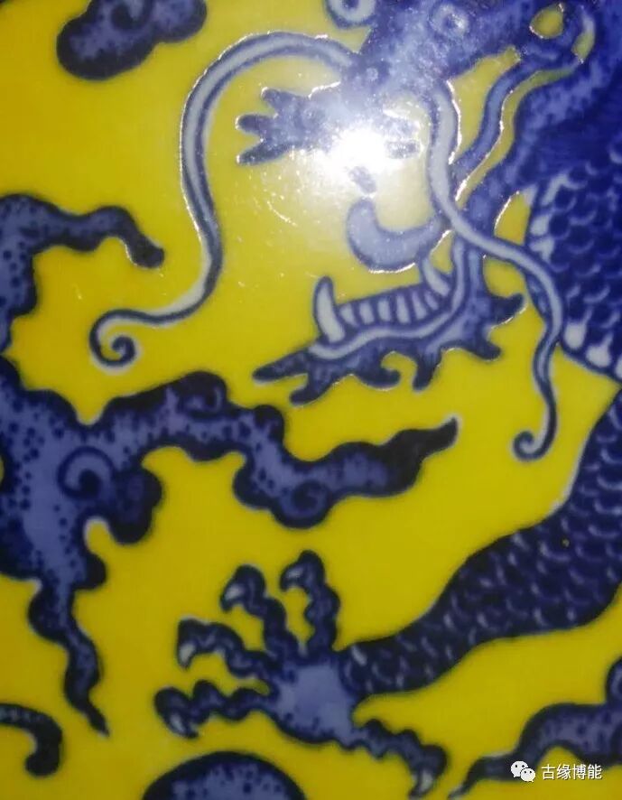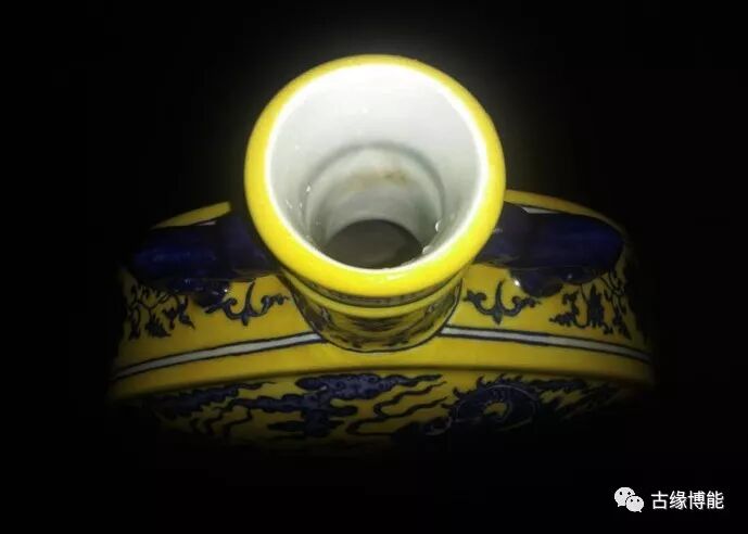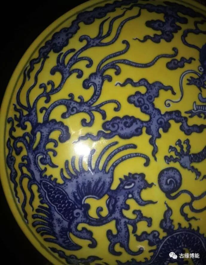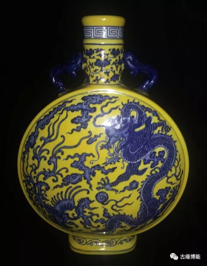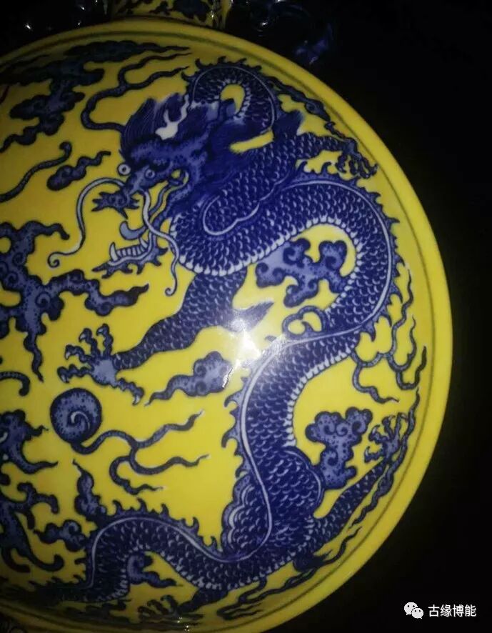 颜色鲜明。此瓶青花与黄釉颜色鲜艳,尤其青花所绘龙凤纹深浅层次清晰,绘画高超,所绘龙为五爪,青花点睛,龙身雄健壮硕,