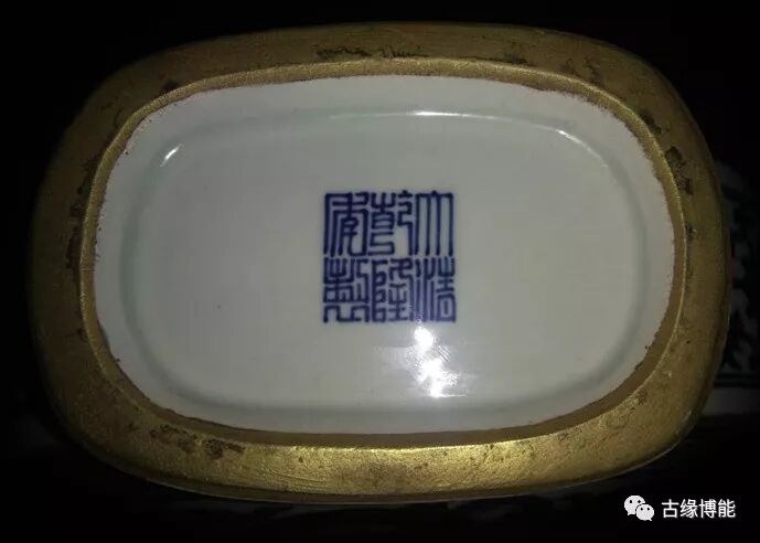唇口,直颈,颈与腹上部连接变龙式耳,扁圆形腹,长方形底座,圈足。