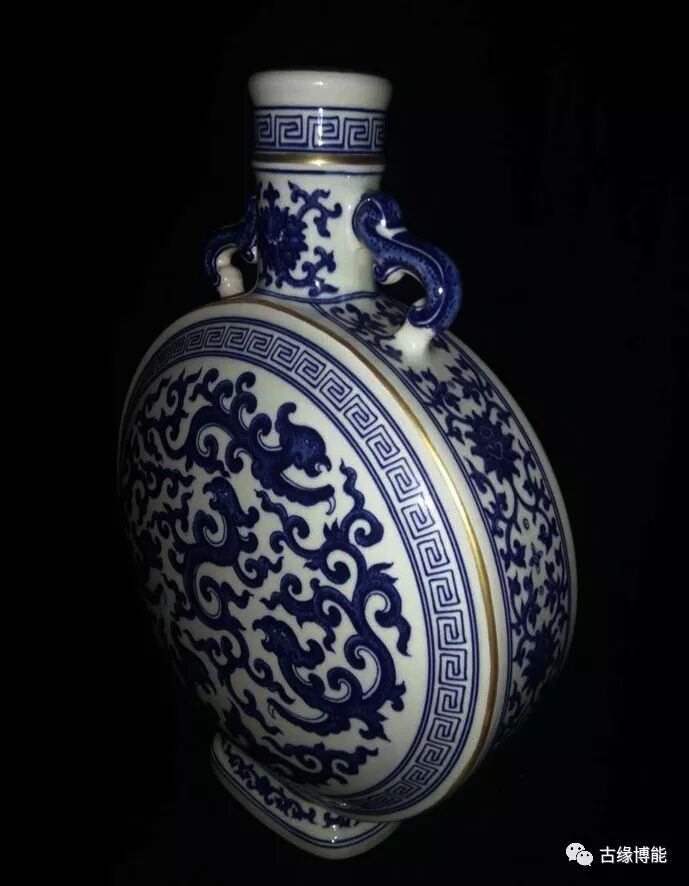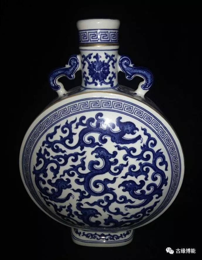 名称:乾隆青花螭龙纹兽耳扁瓶