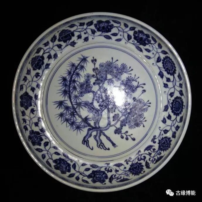 名称:明宣德青花岁寒三友大盘