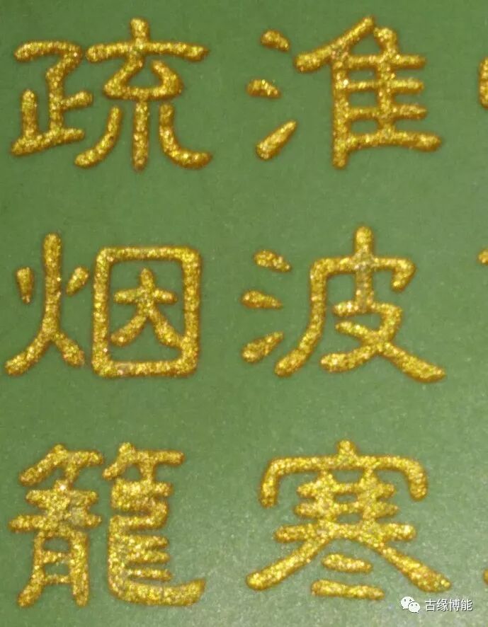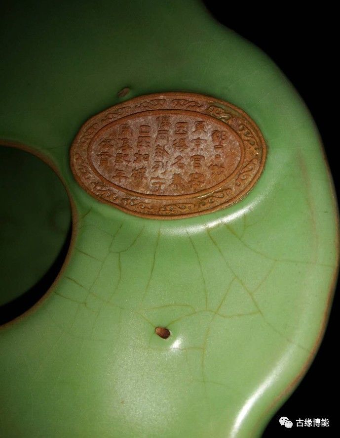 密密麻麻气砲,釉中有不规则纤细开片线。釉色绿中泛亮,纯净、温润,釉表隐现出一种柔和含蓄的光泽。