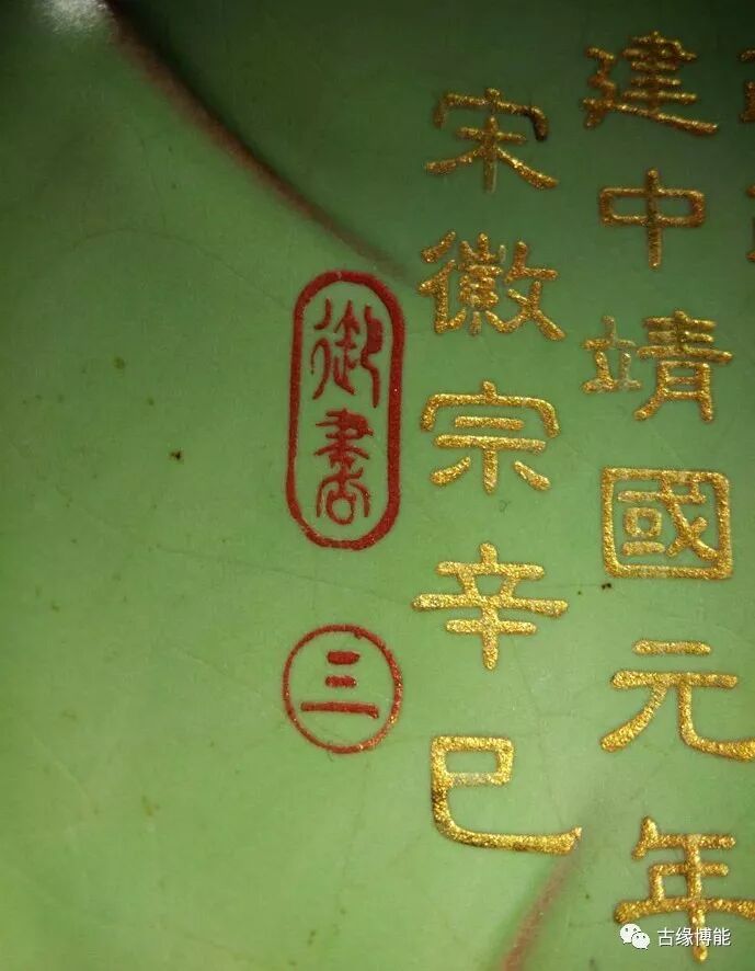底边花框印款“邵局傲 东京官窑因得各兼 偶同卦列守 口匹如城 宋享熙年 御贡”,