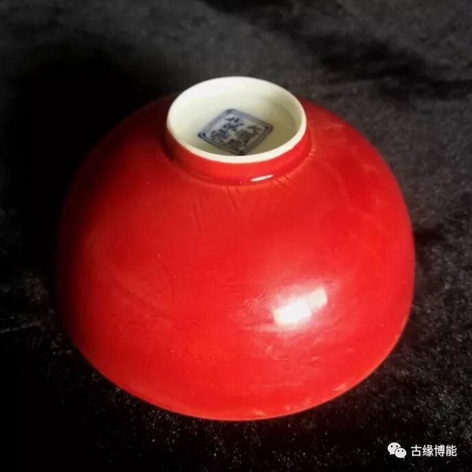 名称: 成化宝石红釉暗刻凤纹薄胎碗